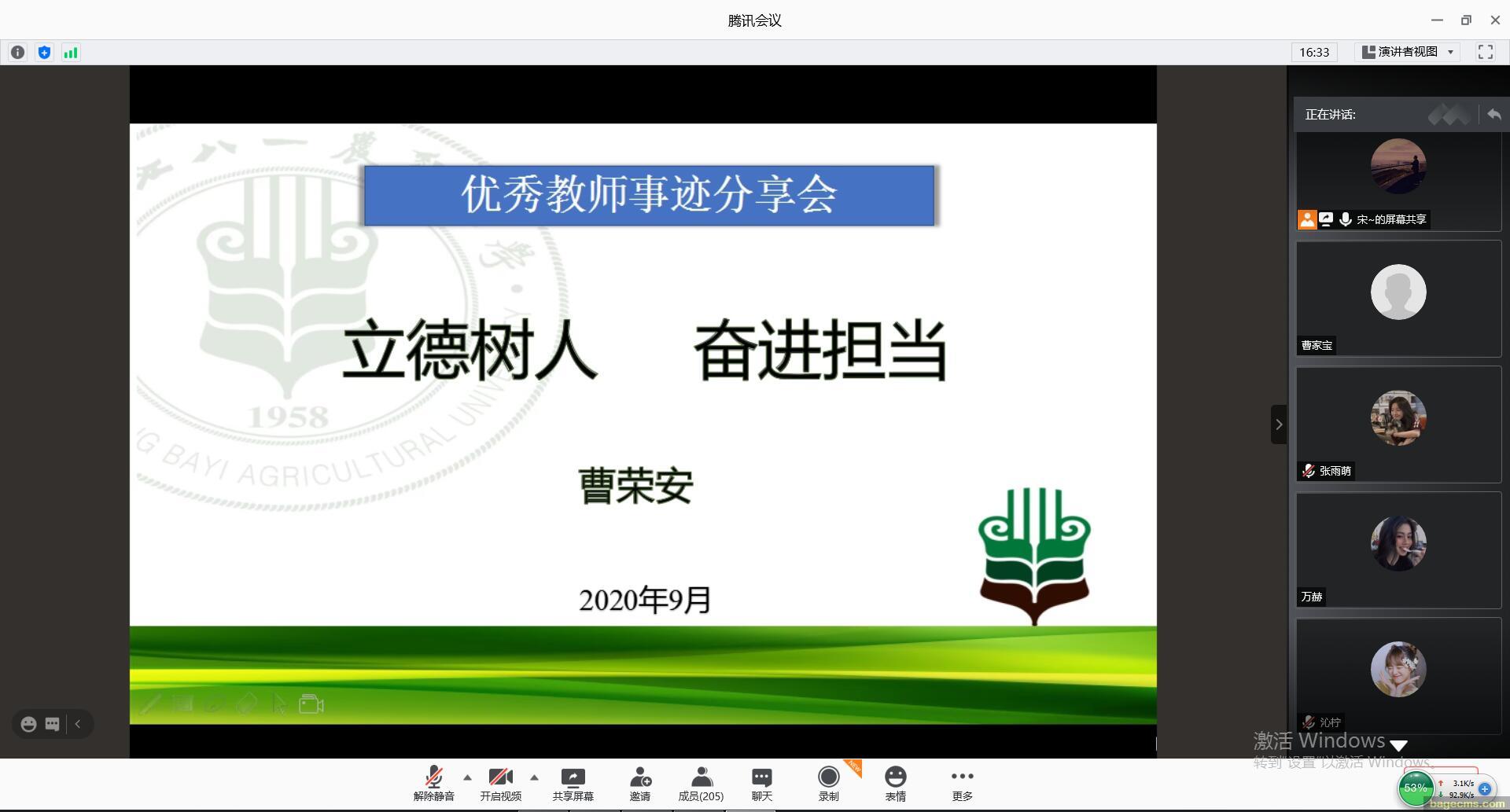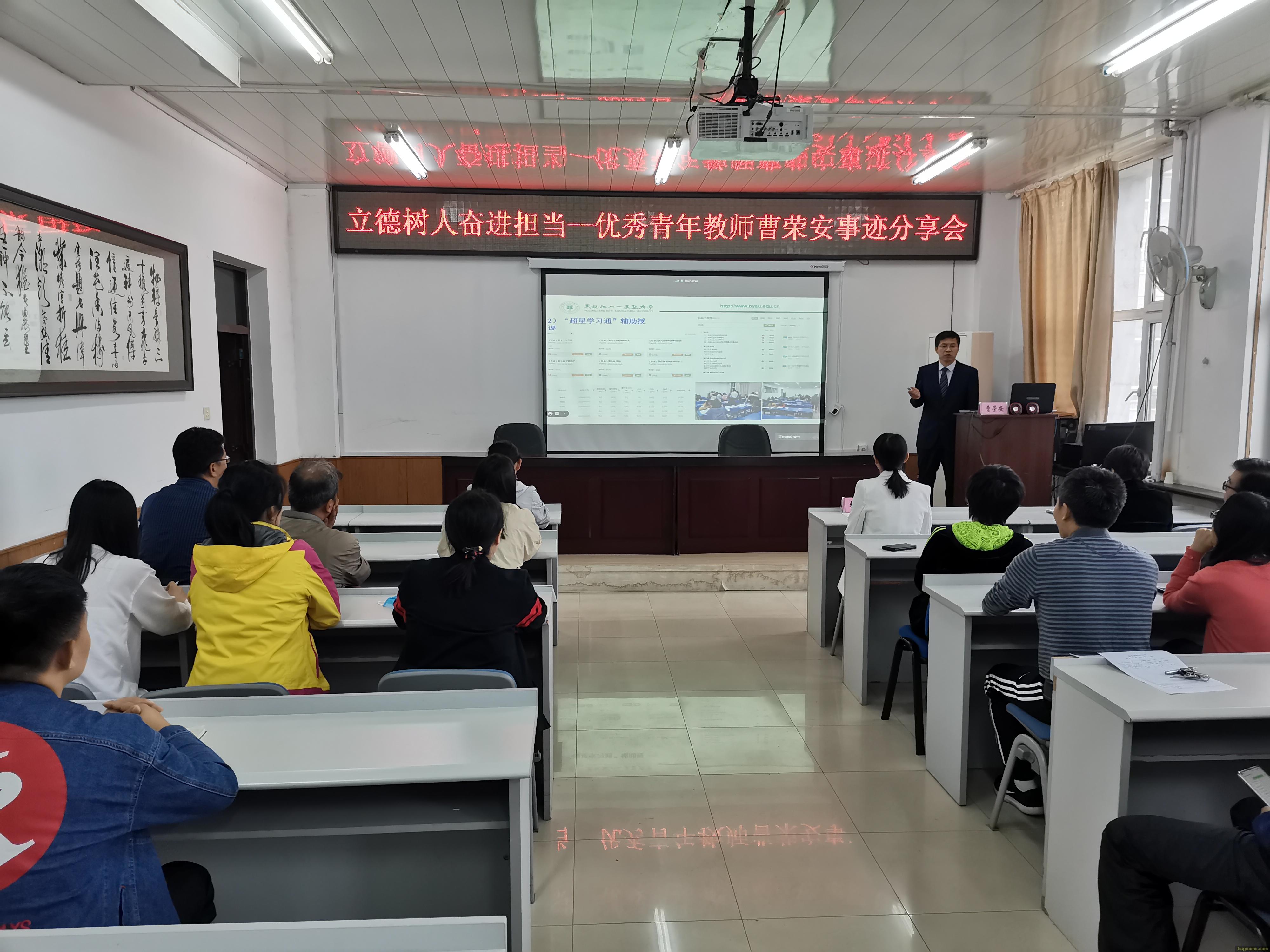 9月9日,best365中国官方网站在生物馆3058会议室开展“优秀教师事迹分享会”,best365中国官方网站2016级食工1班班主任、教工第一党支部书记曹荣安进行事迹分享,活动采取线上、线下相结合的方式,学院领导、全院教师、部分员工代表共计500余人参加。曹荣安老师首先介绍了2016级食工1班的班级建设情况,重点讲述了他指导班级同学创立大创公司、参加科技竞赛和创新创业项目的突出成绩,以及自费设立“班主任特别奖”等班级管理举措和成功经验,还介绍了教工第一党支部党员教师从事社会服务和志愿服务等优秀事迹,最后曹老师结合自身经历从教育科研、挂职锻炼、社会服务等多个方面进行了分享交流。通过此次活动,旨在引导广大教职工不忘教书育人初心、牢记人才培养使命,在继承和发扬八一农大优良传统的基础上,投身教学、潜心科研,以实际行动为建设特色鲜明高水平现代农业大学贡献力量。