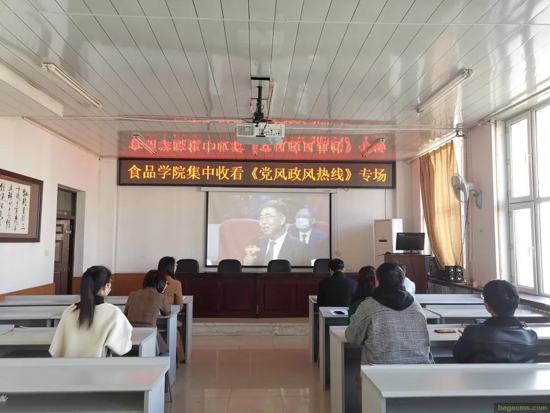 根据省教育厅《做好<党风政风热线>专场有关工作提示》要求,食品公司党委高度重视、精心部署,10月16日上午,学院全体院领导、辅导员在学院三楼会议室集中收看《党风政风热线》专场直播。