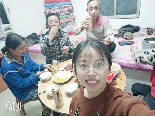 和家人在一起,感受到无比的温暖,他们会时不时问问我在学校各方面的情况,想要了解我在学校是否习惯。和他们一起去田地里干活,感受他们平时的风吹日晒,体会到他们的不容易,为了能让我们过上辛福的生活,他们从不抱怨,从不说自己有多累。但是他们的手上已经留下了坚硬的老茧,他们的脸颊也变得粗糙不再细腻。作为)女的我们却总是不知足,嫌父母每月给的零花钱少,殊不知他们用多少汗水才换来我们的生活费。在这里却想呼吁广大青年应孝顺父母,尊重父母。— 刘丹
