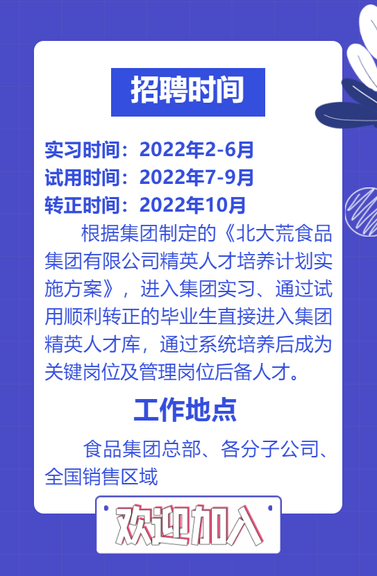 就业信息 | 北大荒食品集团有限公司2022届“食习生”招聘正式启动