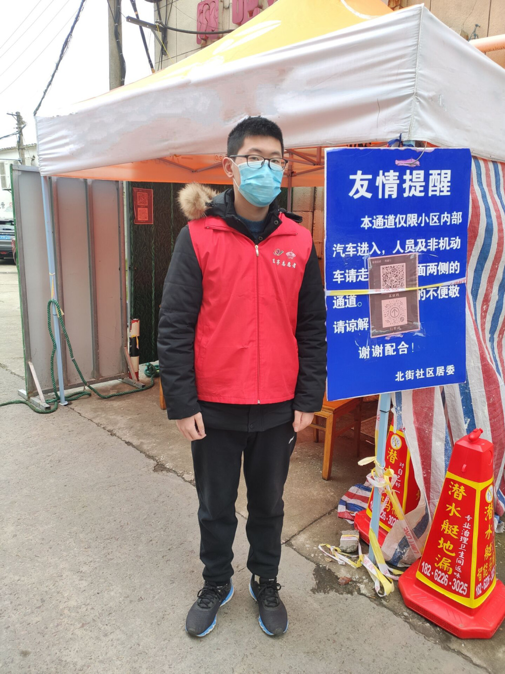 作为一名志愿者,他的职责是对进出小区大门的人员进行体温检测以及行程码与健康码的查验和登记。同时也负责为去附近的核酸检测点去进行核酸采样的居民提供引导。俞江华深知自己身处联防联控的末端,又是直面潜在病患的前端,肩负的压力不小。在保证自身安全的同时,更多更好的为居民服务,保证居民的安全。