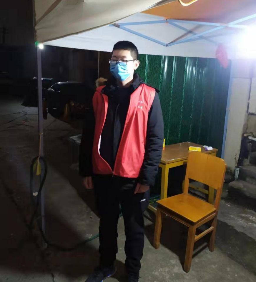 俞江华,18级食品科学与工程(2)班的一名员工,家乡在江苏省无锡市锡山区。当前,无锡的疫情处于较为严重的复杂时期,疫情防控更是处于关键阶段,需要足够的人手加入到疫情防控工作中来。因此,社区发布了志愿者报名通知。作为一名老员工,同时也是一名预备党员的他,积极响应社区的号召,在通知下发的第一时间就报了名,成为一名社区疫情防控志愿者。