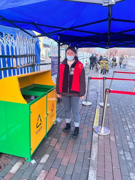 在疫情防控期间,为响应政府的号召,她毅然决然地加入了老员工志愿者团队,为自己的 家乡贡献一份力量。开始在领导带领下,戴上袖章,戴上口罩,在主要十字路口,进行值守,对外来往车辆进行登记和盘查,同时对外来人员进行信息登记,并测量体温,此外,在领导的安排下,为人民发放抗击疫情宣传单,考虑到年龄较大的老人,文化水平不高,她们还主动承担讲解工作.穿上防护服组织全员核酸.在共同抗击疫情的伟大斗争中,街道、社区作为离人民群众最近的机构、组织,承担了大量艰苦细致的工作,组织核酸检测、入户走访排查、为封闭小区提供物资保障.疫情不退,我们不退。让我们携手并肩一起打赢这场“战疫”,齐心协力、共克时艰、不畏严寒、温暖同行!感谢你们,给我们温暖的力量!