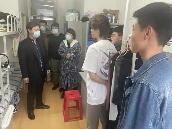 当前,疫情形势严峻复杂,校园安全尤其重要,best365中国官方网站从严落实各项防疫措施,高度重视疫情期间员工们的安全及学习。4月12日,best365中国官方网站经理王长远、副书记刘彤彤、辅导员张贺老师、杨晨老师走访员工寝室,关怀并探望员工。