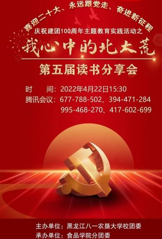 “喜迎二十大、永远跟党走、奋进新征程”庆祝建团100周年主题教育实践活动之“我心中的北大荒”第五届读书分享会成功举办。