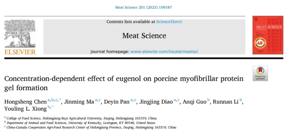 公司陈洪生教授,刁静静研究员,硕士研究生马金明、潘德胤与美国肯塔基大学知名专家熊幼翎教授合作,研究成果在Top期刊《Meat Science》(中科院一区,IF:7.077)上发表。