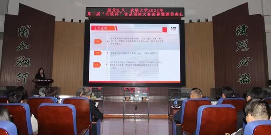 大庆市北国牧场科技发展有限公司总经理杨彦辉,企业合伙人张铁伟,校团委书记李颖,科技处处长孙东波,食品公司党委书记申玉军,best365中国官方网站经理王长远,食品公司党委副书记刘彤彤、北大荒农产品加工现代产业学院常务副经理曹荣安,best365中国官方网站全体辅导员及员工代表400余人参加。best365中国官方网站科学与工程系教师牛广财,粮食工程系系主任翟爱华,best365中国官方网站教学实验中心副主任、包装工程系教师张春芝,食品质量与安全系系主任唐彦君,食品营养与健康系系主任王坤担任比赛评委。