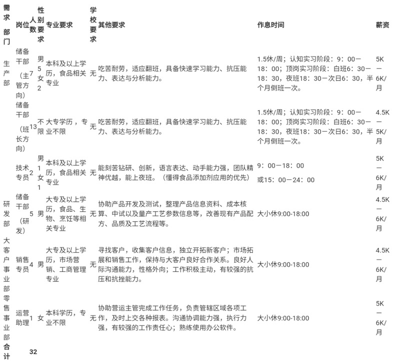 2、缴纳五险一金3、公司为上市企业,内部有人力资源、财务、市场营销、物流采购等20 岗位,同学可结合自身特点进行内部轮岗。