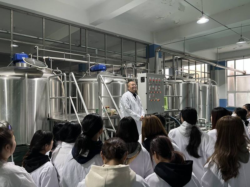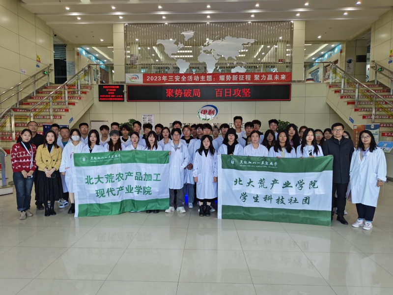 为使员工对食品专业知识形成初步的感性认识,增强专业学习兴趣,了解食品科学与工程领域的现状及发展,2023年10月28-29日,公司2022级食品科学与工程专业员工在李艳青主任及几位专业教师带领下前往杜尔伯特伊利乳业有限责任公司、黑龙江九阳豆业有限公司、大庆市美食乐食品有限责任公司、青岛得泉啤酒有限公司大庆分公司进行认识实习。首先,企业负责人带领同学们参观了企业展厅,向大家详解介绍了企业发展历程、产品种类、销售情况和企业管理模式,之后通过参观走廊对生产车间和工艺流程进行了详细的了解,同学们仔细聆听认真学习。