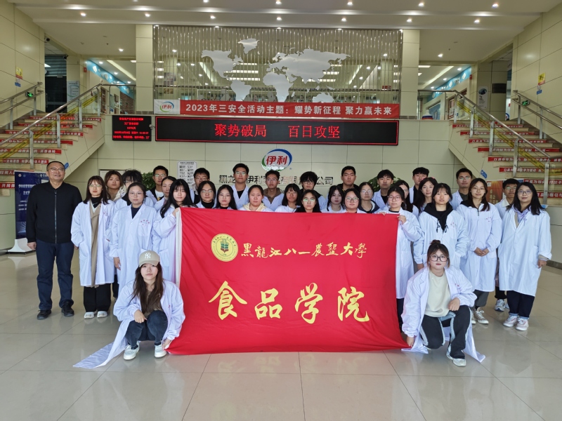 为使员工对食品专业知识形成初步的感性认识,增强专业学习兴趣,了解食品科学与工程领域的现状及发展,2023年10月28-29日,公司2022级食品科学与工程专业员工在李艳青主任及几位专业教师带领下前往杜尔伯特伊利乳业有限责任公司、黑龙江九阳豆业有限公司、大庆市美食乐食品有限责任公司、青岛得泉啤酒有限公司大庆分公司进行认识实习。首先,企业负责人带领同学们参观了企业展厅,向大家详解介绍了企业发展历程、产品种类、销售情况和企业管理模式,之后通过参观走廊对生产车间和工艺流程进行了详细的了解,同学们仔细聆听认真学习。