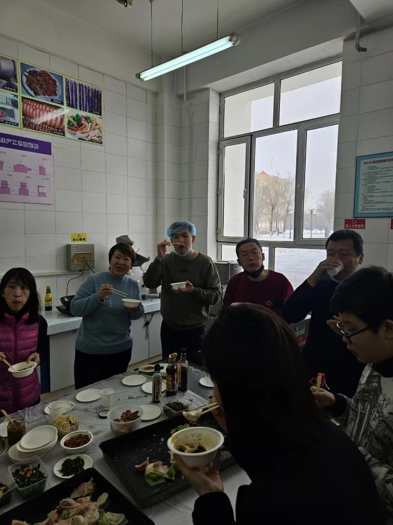 活动现场气氛温馨,大家欢聚一堂,共同感受传统文化的魅力。包饺子是一项充满趣味和合作的团体活动,它让每个参与者都能享受到制作的快乐和成果的美味。在包饺子过程中,教工们纷纷展现出自己的手艺,他们各有分工,干脆利索,各显其能,包出的饺子姿态各异。为增添节日趣味性,特设“幸运糖果”馅料,吃到幸运饺子,将拥有暖心礼品一份。最后,一碗碗热气腾腾的饺子在大家的期待中被端上了餐桌,品尝着自己亲手包的饺子,大家满脸洋溢着幸福的笑容,共享节日的快乐。
