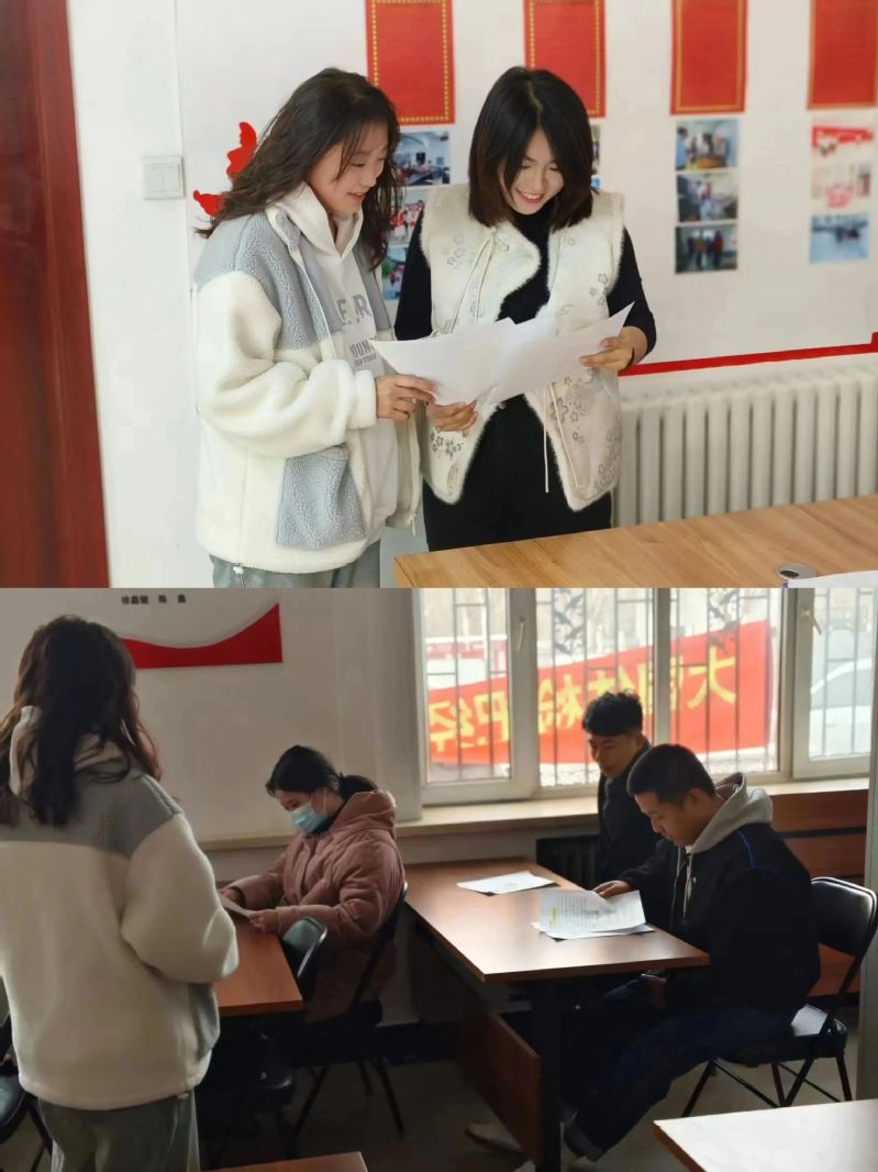 公司2023年国家励志奖学金获得者常宇彤、张琦利用假期时间在曾就读的初中、社区向员工和家长宣传员工资助政策。