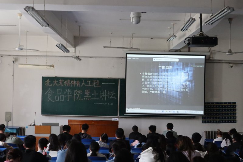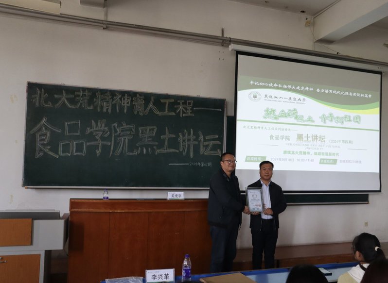 此次讲座分别邀请了黑龙江九鑫集团酒车间主任刘明涛和北大荒集团黑龙江香坊农场有限公司党委书记、董事长,高级政工师关宏宇。两位主讲人分别以“野生蓝莓蒸馏酒的生产实战篇—食品机械、包装、设计中的配套方案构思” 和“赓续北大荒精神,砥砺奋进新时代”为题,以自身深厚的学术功底和丰富的实践经验,为大家带来了两场精彩纷呈、深入浅出的知识盛宴。
