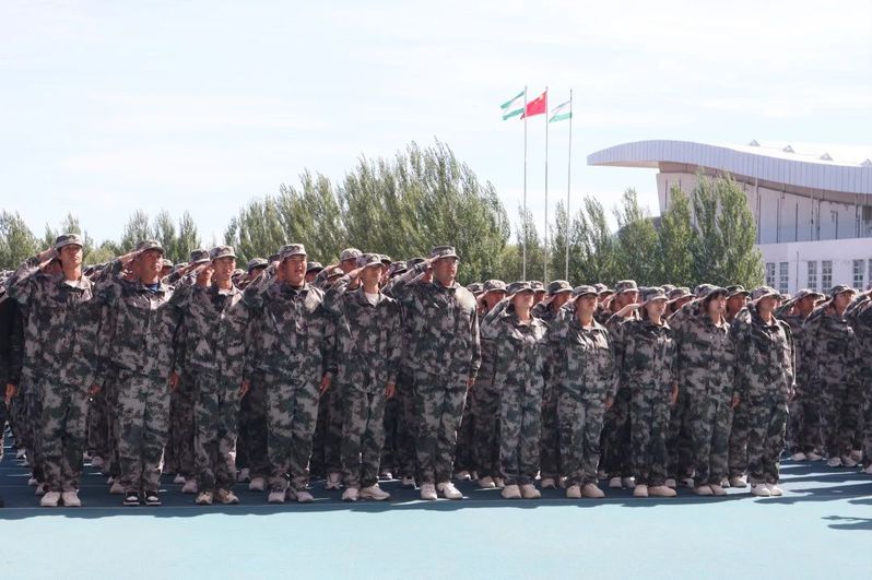 军训期间,在烈日下,同学们身着整齐的军装,身姿挺拔如松。从最基本的立正稍息、敬礼、停止间转法,到复杂的队列行进、军体拳,同学们在教官的严格指导下,他们从最初的摇摇晃晃的站姿、不整齐的步伐,到最后整齐划一地踢出有力的步伐,每一步都凝聚着他们的汗水与信念。