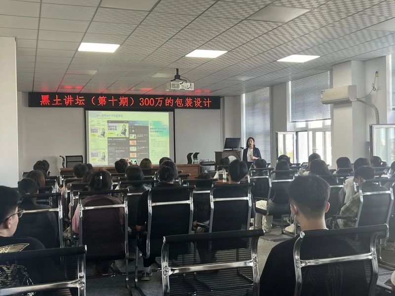 此次讲座邀请到了薛淑娟老师为主讲嘉宾,薛老师毕业于天津美术学院,有着15年设计的相关工作经验,前百度设计总监。薛老师的学员就业于腾讯、阿里、网易游戏、字节跳动等知名企业。薛老师本次讲座以“三百万的包装设计”为题,从包装设计的由来展开,为同学们介绍了包装设计的工作内容、岗位技能要求和职场延伸的注意事项等,并分享了包装设计行业的现状、发展趋势以及未来就业前景。