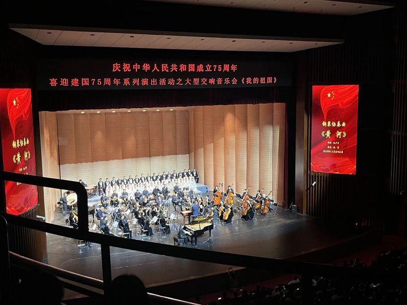 音乐会节目丰富多彩,既有经典的曲目《英雄赞歌》、《我爱你中国》、《我的中国心》等,也有钢琴演奏家赵鑫带来的钢琴协奏曲《黄河》。