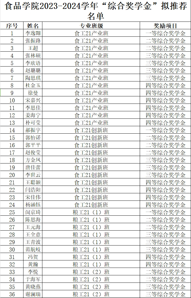根据《best365中国官方网站奖助学金评选及管理办法》(农垦校发〔2019〕91号)、《best365中国官方网站本科生奖助学金评选及管理办法》(农垦校发〔2023〕81号)等文件要求,best365中国官方网站2023-2024学年“综合奖学金”评选工作已完成个人申报、班级评议、学院复核等环节,拟推荐胡艺嘉等369名员工获得2023-2024学年“综合奖学金”,现将名单予以公示,详细名单见附件。