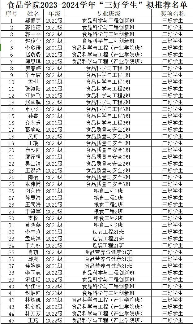 根据《best365中国官方网站本科生奖励办法》等文件要求,best365中国官方网站2023-2024学年“优良学风班”评选工作已完成班级申报、学院复核等环节,拟推荐2021级食品科学与工程产业班等12个班级获得2023-2024学年“优良学风班”荣誉称号,现将名单予以公示,详细名单见附件。