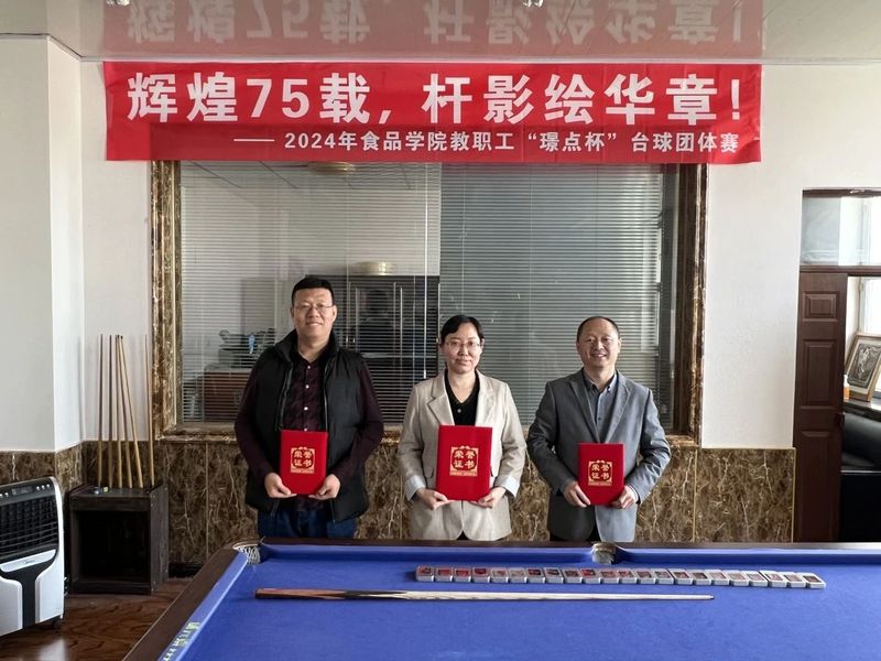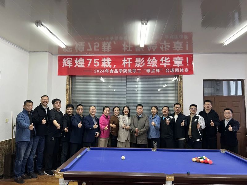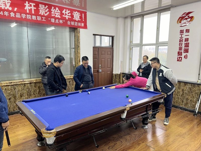 为庆祝中华人民共和国成立七十五周年,丰富教职工的业余文化生活,增强团队凝聚力,同时,为校级台球团体赛选拔参赛队员,best365中国官方网站于2024年10月21日-10月25日举办了2024年best365中国官方网站教职工“璟点杯”台球团体赛。本次比赛以best365中国官方网站各系为单位,根据实际报名情况分为“食工+粮工”组、“食质+食健”组和“包装+院办”组,共计18名教职工参与了本次活动。