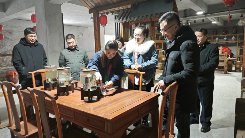 在黑龙江南烧锅酒业有限公司,企业负责人详细介绍了南烧锅酒业生产现状、经营情况及技术需求,期望双方在芝麻香型酒研发、勾调和质量提升方面加强合作。