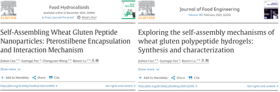近日,我院在读博士研究生曹家宝,围绕“小麦面筋蛋白肽自组装水凝胶体系构建”研究主题,以第一作者身份在《Food Hydrocolloids》(中科院一区TOP,IF:11)、《Journal of Food Engineering》(中科院二区TOP,IF:5.3)等杂志分别发表题为“Self-Assembling Wheat Gluten Peptide Nanoparticles: Pterostilbene Encapsulation and Interaction Mechanism”与“Exploring the self-assembly mechanisms of wheat gluten polypeptide hydrogels: Synthesis and characterization”的研究性论文,鹿保鑫教授为以上论文的通讯作者。该研究得到了国家重点研发计划稻麦适度加工及产品增值关键技术研发与产业化示范项目支持(2021YFD2100902)。