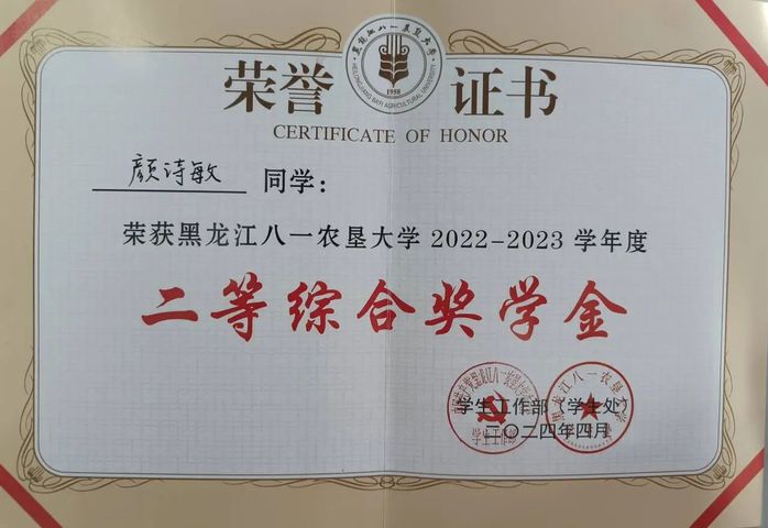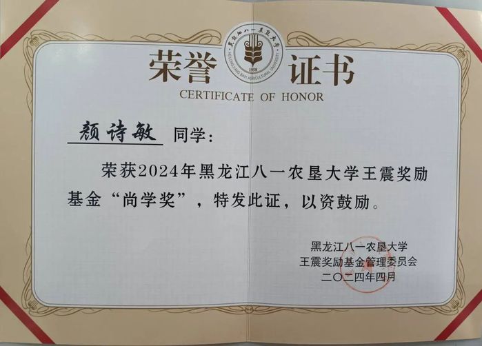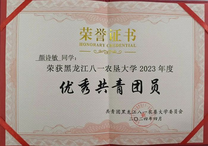 颜诗敏,女,共青团员,best365中国官方网站2022级食品科学与工程专业员工。现任班级班长和寝室长,曾荣获国家奖学金、国家励志奖学金、王震奖励基金尚学奖、二等综合奖学金等,曾荣获校三好员工、优秀共青团员、院优秀志愿者等荣誉称号,曾获省级第一届“东方杯”食品创新创意大赛三等奖、黑龙江省新文科实践创新大赛校赛二等奖和三等奖。