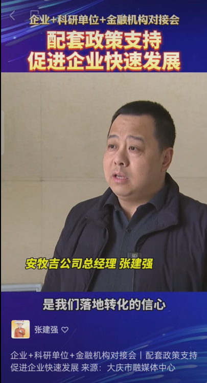 会上,张建强作为安牧吉(黑龙江)食品有限公司负责人参加了交流发言。他谈到安牧吉项目的技术、设备和工厂基本都能实现自主知识产权和国产化,项目之所以能够快速落地,得益于大庆市政府、高新区的大力支持以及公司党委的牵线搭桥。通过此次会议公司了解到项目后续融资的方式和方向,有利于企业今后的健康发展。目前,张建强教授对项目按照计划如期完成建设充满信心,他表示今后要坚决贯彻执行习近平总书记关于教育、科技、人才的总要求,通过本项目的实施,为打通产学研用全链条提供参考案例,最终形成良性循环,为推动地方新质生产力的发展贡献自己的力量。