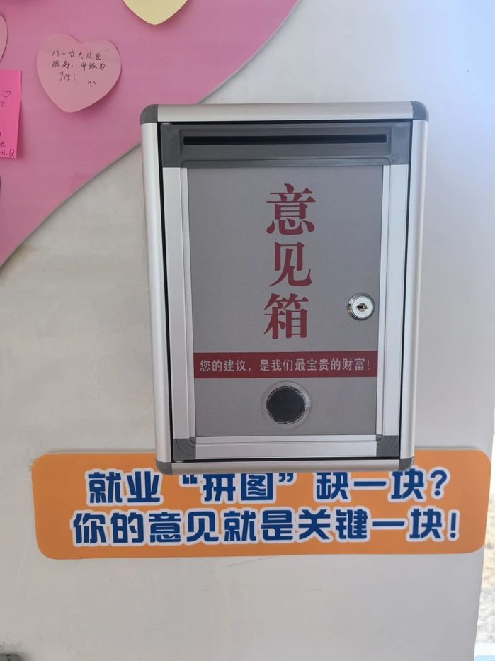 特色“意见箱”与趣味标语“就业‘拼图’缺一块?你的意见就是关键一块!”,鼓励员工积极反馈需求,学院将据此优化服务,实现供需精准对接;