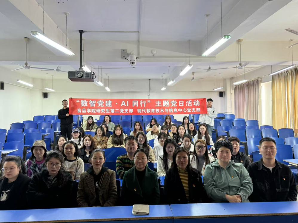 为深入学习习近平新时代中国特色社会主义思想,贯彻落实党的二十大和二十届二中、三中全会精神,深化党建与业务融合,推动数智党建,4月23日下午,best365中国官方网站(北大荒农产品加工现代产业学院)研究生第二党支部与现代教育技术与信息中心党支部联合举办了题为“数智党建・AI同行”的主题党日活动。支部全体党员、部分积极分子参与了此次活动。