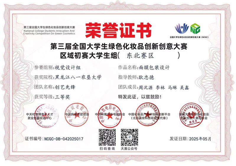 三等奖(2支):作品《馥来尔面霜系列包装装潢设计》、作品《面膜包装设计》