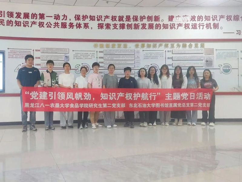 随后,全体党员前往东北石油大学知识产权文化育人展厅参观学习。在讲解员的引导下,大家通过知识产权发展史、典型案例视频、专利专题数据库实际操作等,系统了解了知识产权的发展历程和时代意义,进一步深化了党员对党建与业务融合路径的思考。
