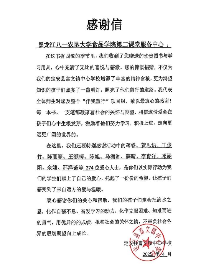 “伴我同行,守望星光”既是一次爱心的汇聚,又是一场温暖的传递。此次活动,增强了食品学子的社会服务感与服务意识,提高了对山区留守儿童的关注度,展现了同学们富有同情心、乐于奉献的精神风貌,未来,学院将加强与社会公益组织合作,助力留守儿童追逐梦想,绽放光彩。