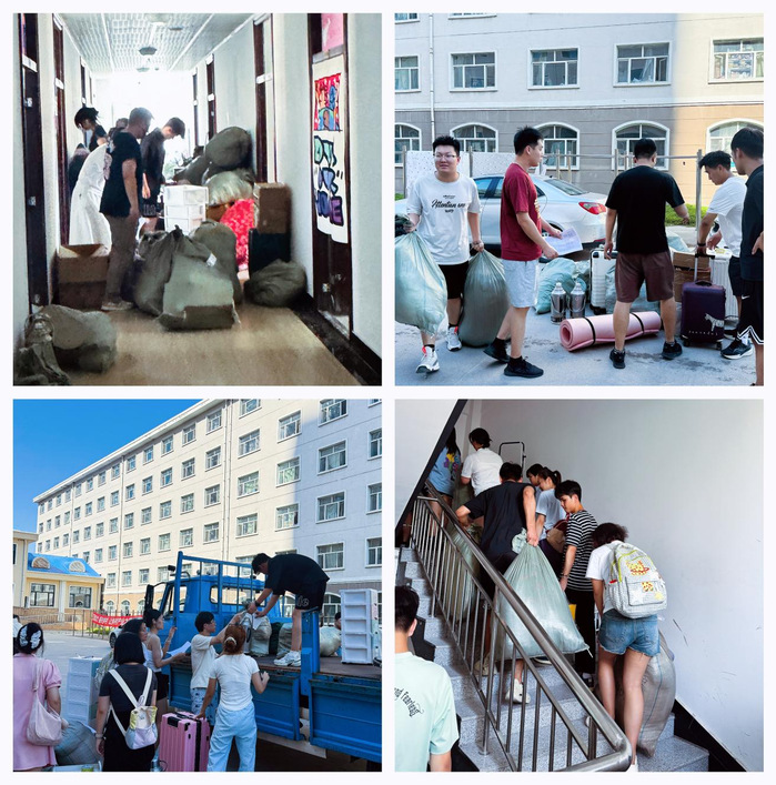 7月3日下午3时,运输工作正式启动。校员工处梁净老师积极协调运输车辆及时到位,保障员工物品转运通畅;校员工处于浪潮老师,best365中国官方网站团委书记张贺,团委辅导员许春姝、杨晨、邹丹丹来到现场组织协调,60余名本科生、研究生志愿者主动参与,师生协同,确保所有行李及时装载、安全送达新宿舍,全程高效有序,圆满完成搬迁工作。