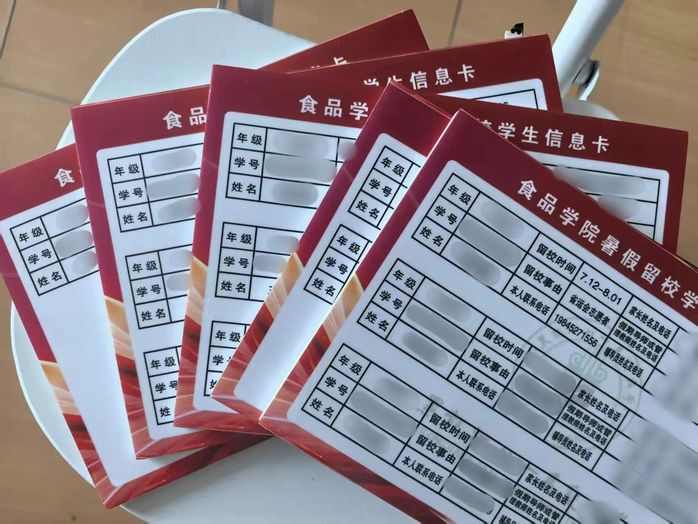 此外,学院还特意为留校生分发了精心制作的留校信息卡,详细记录了各寝室留校员工的基本信息。有助于学院更高效地进行暑期留校员工的管理和服务工作,加强了暑期的安全管理。