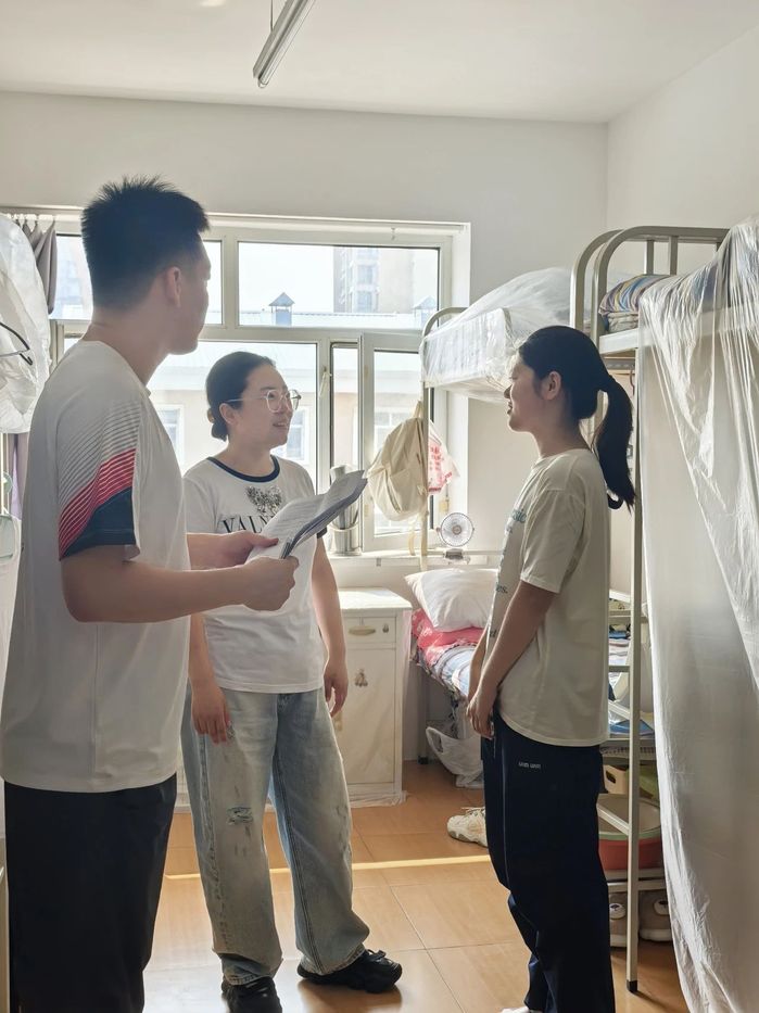 走访过程中,祁异慧副书记与全体辅导员逐一对留校寝室门牌信息进行细致核对,为暑期寝室管理筑牢基础信息防线。针对离校寝室,着重检查电闸是否关闭、水龙头有无漏水,从细微处消除安全隐患,守护校园安全。在走访留校生寝室时,老师们与员工们亲切交流,结合暑期炎热天气特点开展寝室安全教育,提醒同学们注意水电安全,杜绝因用电疏忽引发安全风险。鼓励大家积极准备即将到来的运动会,同时,考虑到暑期高温,老师们还不忘提醒员工们要做好防暑降温措施,合理安排作息时间,确保自身的身心健康。