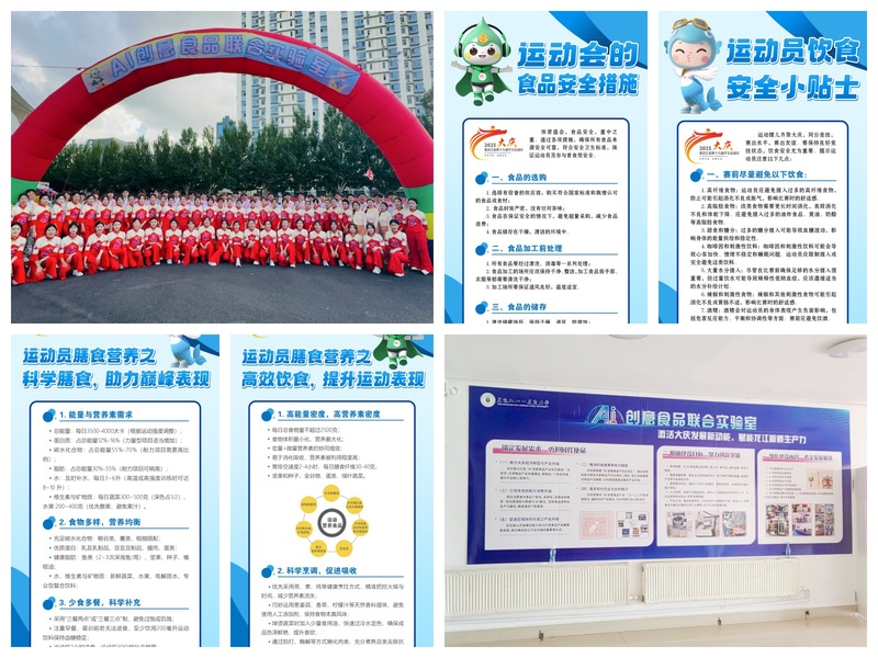此次AI创意食品展是公司服务省运会、提升赛事科技与文化内涵的重要举措。它不仅为紧张的赛事增添了趣味性与互动性,让参赛师生在竞技之余享受了一场未来感十足的美食文化盛宴,更生动展示了学校在食品科技前沿领域的探索实力,将“科技助力体育”、“智慧改变生活”的理念深植人心。实验室师生以专业的技术讲解和热情的服务,向全省展现了八一农大食品人的创新风采。