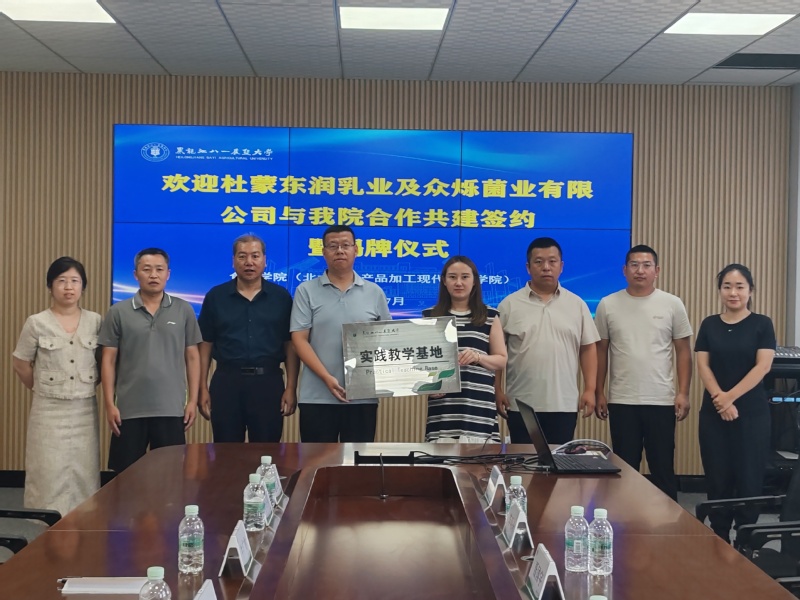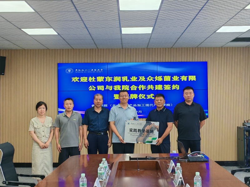 为贯彻落实校企地协同育人建设工程,拓展员工实习实践平台,7月25日上午,公司与杜尔伯特蒙古族自治县东润乳业有限公司、众烁菌业有限公司实习合作签约暨挂牌仪式在best365中国官方网站3050会议室举行。副经理王洪江、农产品加工团队教师牛广财、魏文毅、王鹤霖,杜尔伯特县克尔台乡副乡长聂国宇、一心乡党委副书记王鑫麟、东润乳业有限公司总经理王宇、众烁菌业有限公司法人李明轩等人出席仪式并座谈交流。