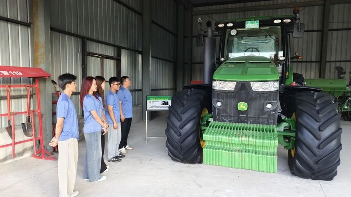 实践团先后在中国青年志愿垦荒纪念馆、宝泉岭机械记忆馆、梧桐河百年稻史馆、共青农场现代化农机园区“禾作空间”水稻科技园区开展参观研学,张张泛黄的照片、锈迹斑斑的犁铧、生动的拓荒场景复原,让“向荒原要粮”的峥嵘岁月跃然眼前,团队成员不时驻足记录,深切感悟老一辈垦荒人“献了青春献终身”的赤诚,深切体会从“人拉肩扛”的艰辛开垦到智能农机的高效作业,身临其境地感受北大荒艰苦创业的不易与黑土地科技兴农的澎湃。实践团还进行了农活体验、重走垦荒路、学做垦荒饭等实践内容,与农场职工共同唱响《北大荒人的歌》,歌声在黑土地上空回荡,续写着跨越时空的精神共鸣。