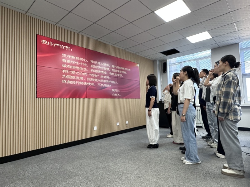 副经理王洪江宣读了《中共best365中国官方网站委员会关于表彰2025年师德建设先进集体、师德先进个人、优秀教师和先进工作者的决定》,对公司获奖教师与集体予以通报表扬。曲傲为获奖教师和集体颁发荣誉证书,会场响起热烈掌声,向他们表示祝贺。获奖教师李丹表示,这份荣誉离不开公司党委长期培养与支持,也离不开团队同事的无私帮助,充分体现学院对教师贡献的高度认可。随后,李丹老师带领青年教师进行庄严宣誓。
