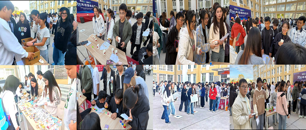 下午15:30,分会场活动在best365中国官方网站广场率先启动,现场迅速化身为融合趣味与知识的科普天地。由食品营养健康系教师指导、23食健班级全力承办的科普游园会,吸引了大量师生踊跃参与。现场不仅设有内容丰富的科普展板,更安排了形式多样的互动环节。同学们在轻松愉快的氛围中边玩边学,通过知识竞赛与趣味游戏掌握实用营养常识,实现“寓教于乐、学以致用”,累计参与人数超过200人。