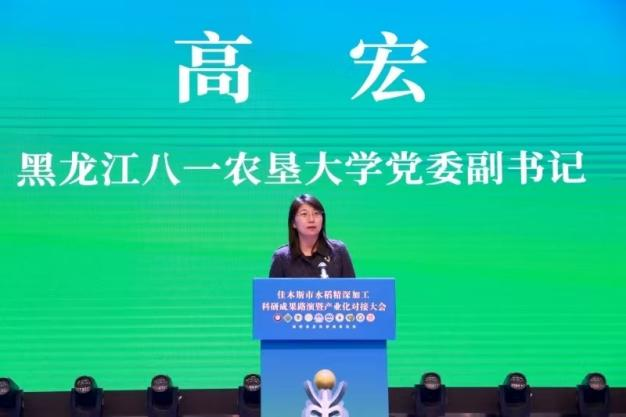 大会开幕式上,佳木斯市委副书记、市长王铁,省科技厅副厅长安建光,省工信厅副厅长羿宗胤分别致辞。高宏代表受邀高校致辞,她向大会的召开表示热烈祝贺,并指出此次活动是贯彻国家创新驱动发展战略、破解水稻产业附加值低难题、助力龙江农业高质量发展的重要举措,并强调了学校在农产品加工领域的科研优势,表达了深化校地合作的积极意愿。
