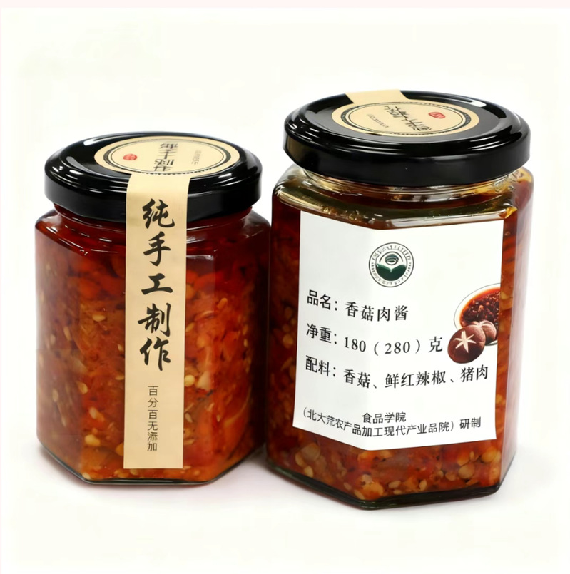肉酱以香菇、鲜红辣椒、猪肉为主要原料搅拌熬制,配以十几种调味料,不含任何食品添加剂及防腐剂,保质期长达一年,滋味独特,营养丰富。