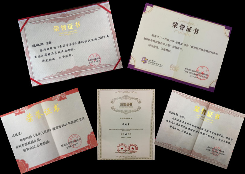 6、黑龙江省在线开放课程优秀教师奖(单项类):最佳互动奖,黑龙江省高校优质课程联盟 2019.1