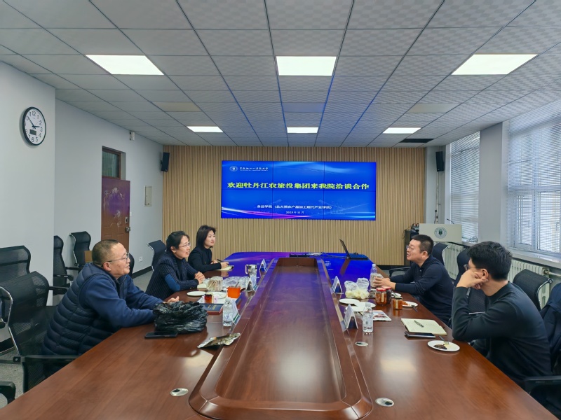 2025年11月17日,牡丹江市农旅投资(集团)有限公司副总经理赵双,黑龙江镜泊湖生物科技有限公司党政办公室主任孙晓东到访best365中国官方网站(北大荒农产品加工现代产业学院),与经理张丽媛、专家李兴革围绕黑木耳、鹿茸菇特色菌菇的精深加工展开深入交流,并达成合作意向。