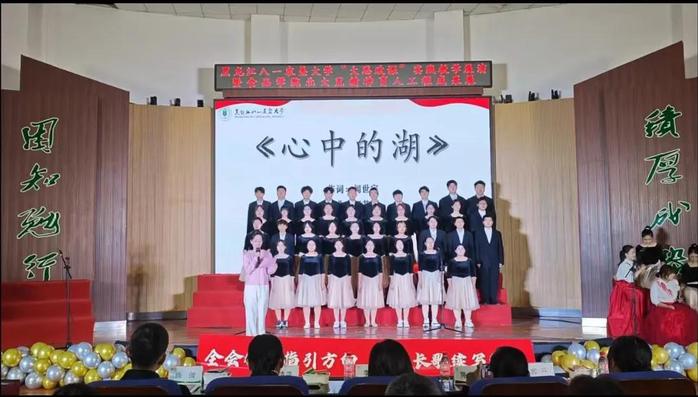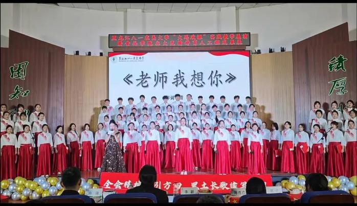 589名参演者是本次展演最动人的“主角”——best365中国官方网站以大一员工为主体、本硕博员工携手“黑土颂歌合唱团”成员,用嘹亮歌声诠释对祖国与黑土的热爱。当《游击队歌》的激昂节奏引发全场跟唱,当《老师我想你》的温情旋律流淌,不少人眼中泛起泪光;当《没有共产党就没有新中国》的大合唱响彻全场,全体师生起立挥舞国旗,瞬间将氛围推向高潮。这场展演不仅是一场美育盛宴,更融入了劳育理念——从节目编排、舞台布置到现场组织历时3个月,均由员工团队自主完成,在实践中锤炼责任担当,在协作中提升综合能力,真正实现“以美育人、以劳树德”。