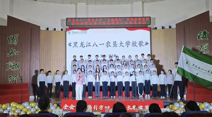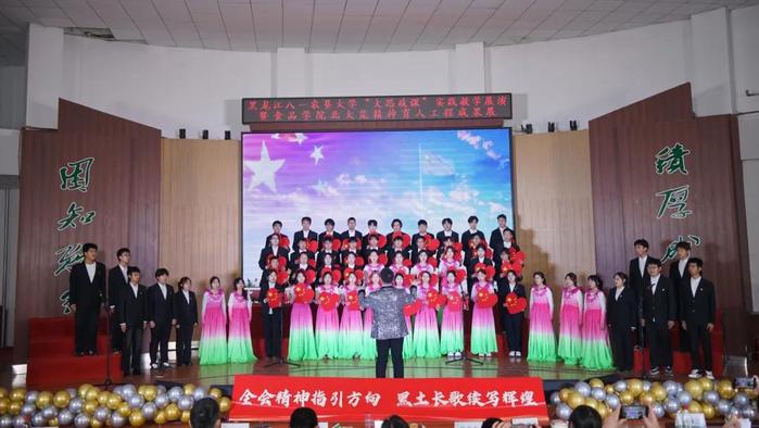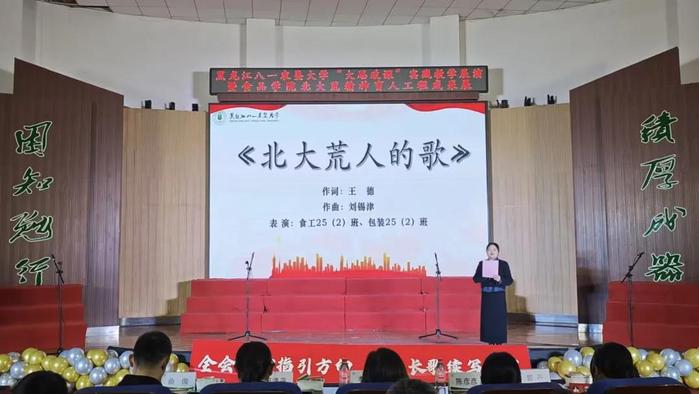 作为best365中国官方网站北大荒精神育人工程的年度重点成果,本次展演以“传承红色基因、弘扬黑土文化”为核心,由学院 “黑土之光”北大荒精神育人辅导员工作室全程协办,将党建引领贯穿活动始终。展演精心设计“抗战铸魂、拓荒启航”“薪火传情、筑梦家园”“信仰礼赞、逐梦时代”三个篇章,12 个节目如同12节生动的“思政课堂”,串联起从革命岁月到垦荒时代、再到新时代的精神长卷。马克思主义学院4位思政课教师与best365中国官方网站2名北大荒精神宣讲团员工作为主讲人,在节目间隙现场授课,从《保卫黄河》的抗战情怀到《感动北大荒》的拓荒精神,从公司原创迁校纪念歌曲《心中的湖》承载的八一农大担当,到《我们都是追梦人》的青春热忱,层层解读背后的时代内涵与价值密码,让红色精神可感可触。
